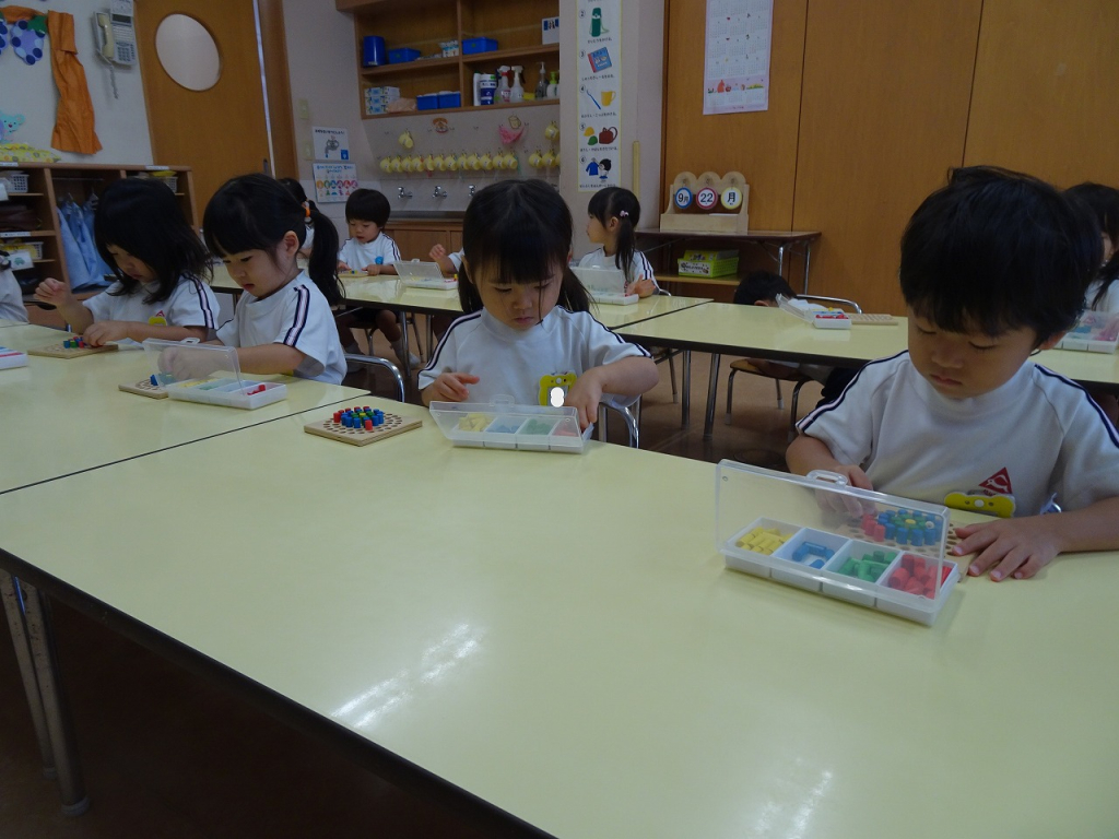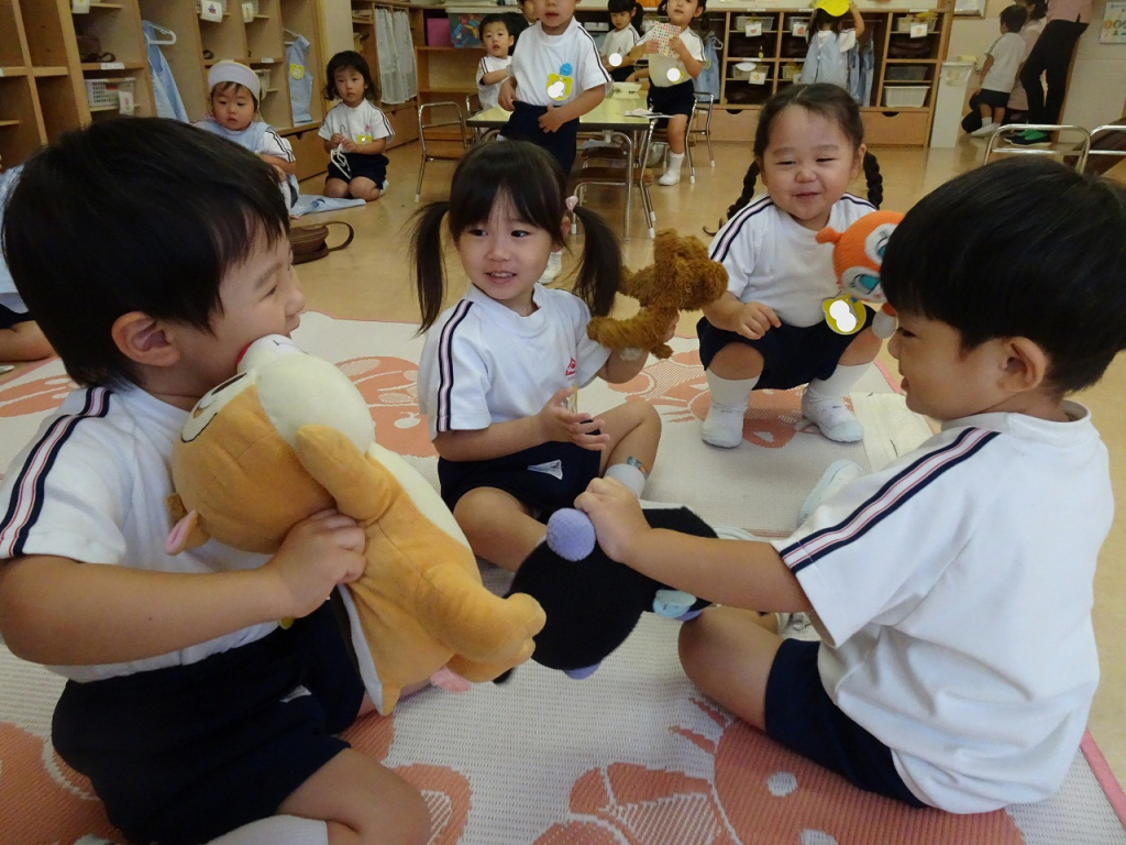 園ブログ 園全体 2025.09.22 今日のたんぽぽ組 朝の支度が迷わずできるようになってきたたんぽぽ組さん。お帳面のシール貼りでは、シールの向きを揃えて目印のところに自信をもって貼ることができています。好きな絵柄のシールを集めているお友達もいますよ。 自由遊びでは、お友達に興味をもって一緒に遊ぶ姿が増えています。今日はみんなでぬいぐるみを持ち、「バイバイキーン!」といいながら大笑いしていましたよ。微笑ましい光景が沢山見られるようになりました。 知育がありました。今日の活動は「ペグ差し」です。洲脇先生の言葉をよく聞き、お手本をよく見て一生懸命考える表情が沢山見られました。集中して取り組んでいましたよ。 知育の後は戸外遊びをしました。秋を感じる涼しい風が吹く中、開放感を感じながら元気いっぱい遊びました。「きもちいいね!」と季節の変化をみんなで喜びました。 給食のミートスパゲッティを食べて元気いっぱいになった後は、運動会の練習をしました。掛け声や踊りを覚えて、嬉しそうに踊っています。本番まで、楽しみながら練習していきたいと思います。 明日は秋分の日でお休みです。また明後日元気に来てください! 一覧へ戻る