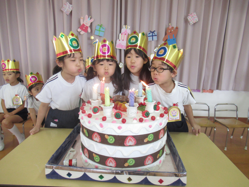 年少さんは16人の誕生児をお祝いしました!緊張しながらも自分の名前や好きな食べ物を発表することができ、成長を感じることができました。出し物のマジックでは、「すごーい!」と思わず身体が前のめりになったり、拍手したりして大盛り上がり!!