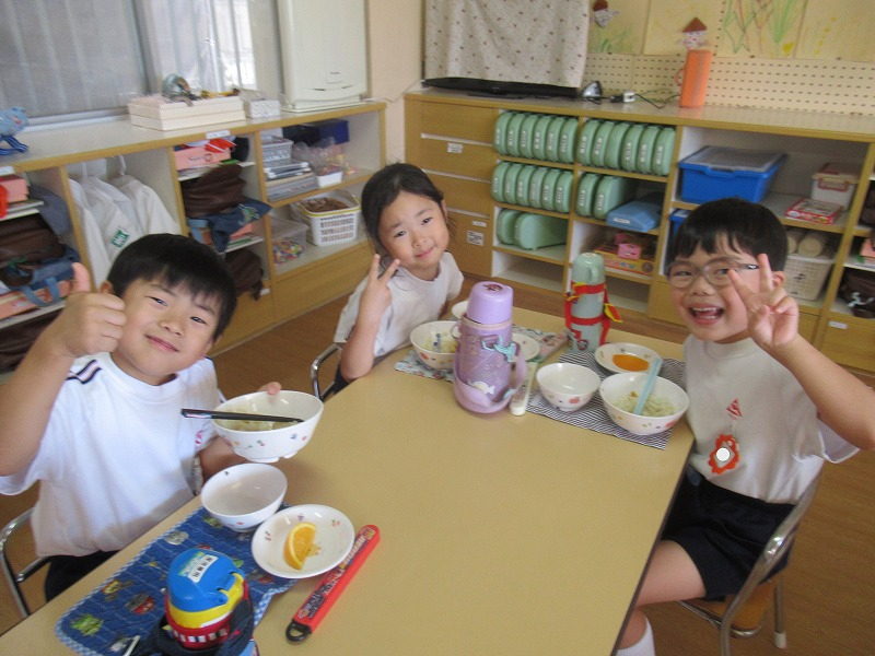 園ブログ 園全体 2025.10.10 今日の年長さん 今日は、運動会の開会式閉会式の練習をしました。回数を重ねるにつれて少しずつ流れを理解してかっこよく取り組む姿が見られていました。今回初めて閉会式の練習を行いましたが、アナウンスの先生のお話を聞いてきびきびと動くことができていました。 うらじゃの練習では、年少さんや年中さんを引っ張って大きな声で踊ることができていました。幼稚園最後の運動会に向けて、堂々と本番を迎えることができるようにこれから連取を重ねていきたいと思っています。 運動会の練習の後は、お部屋に入りちょっと一休み。園庭では、年少さんが遊戯の練習を頑張っていました。2階から園庭の様子を見ながら応援する子供達。お兄さんお姉さんになったなぁと感じます。 今日の給食は、リクエストメニューのかき揚げ丼でした。朝から楽しみにしていた子供達。「おいしいね(^^♪」とあっという間に完食でしたよ。 食事の後は、お外で元気いっぱい遊びました。秋晴れの空のもと、子供達のかわいい声が響きます。今日は、13日(月)のマーチング・イン・オカヤマ本番前最後の練習を頑張った子供達。今日までたくさんの練習を重ねてきました。本番では堂々と演奏する姿を楽しみにしていますよ。みんなで力を合わせて頑張りましょうね!先生達もみんなで応援しています!! 一覧へ戻る