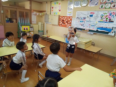園ブログ 園全体 2025.10.24 今日の年長組 昨日の運動会では、年長児らしく堂々といろいろな競技に挑戦する姿を見ることができました。登園後も「いっぱいほめてもらったよ!」「お母さん涙が出たって言ってた!」と嬉しそうにお話してくれる姿が見られました。子供達にとって思い出の残る一日になったようです。 今日は、体育と歌唱指導がありました。体育では、跳び箱に挑戦しました。うまく跳べる約束を聞いて頑張っていましたよ。 歌唱指導では、卒業に向けての歌に取り組みました。歌詞の意味をみんなで考えながら、心を込めて歌をうたえるようにみんなで話し合いをしています。気持ちを込めて歌えるように頑張りましょうね。 きく組さんでは、2学期に取り組んでいる「海」についての話し合いをしました。グループの意見を紙にまとめ、みんなで見て見るといろいろな考え方や思いがあることに気付き、いろいろな角度から探究する姿を見ることができました。 海についての話し合いの中で、海で釣った生き物の話や海で拾った自然物で作った作品を見せてくれるお友達もいました。探究活動が子供達の生活や遊びの中にも浸透しているようです。来週は、遠足やワンディキャンプと楽しいことがたくさんあります。来週も元気に来てくださいね! 一覧へ戻る