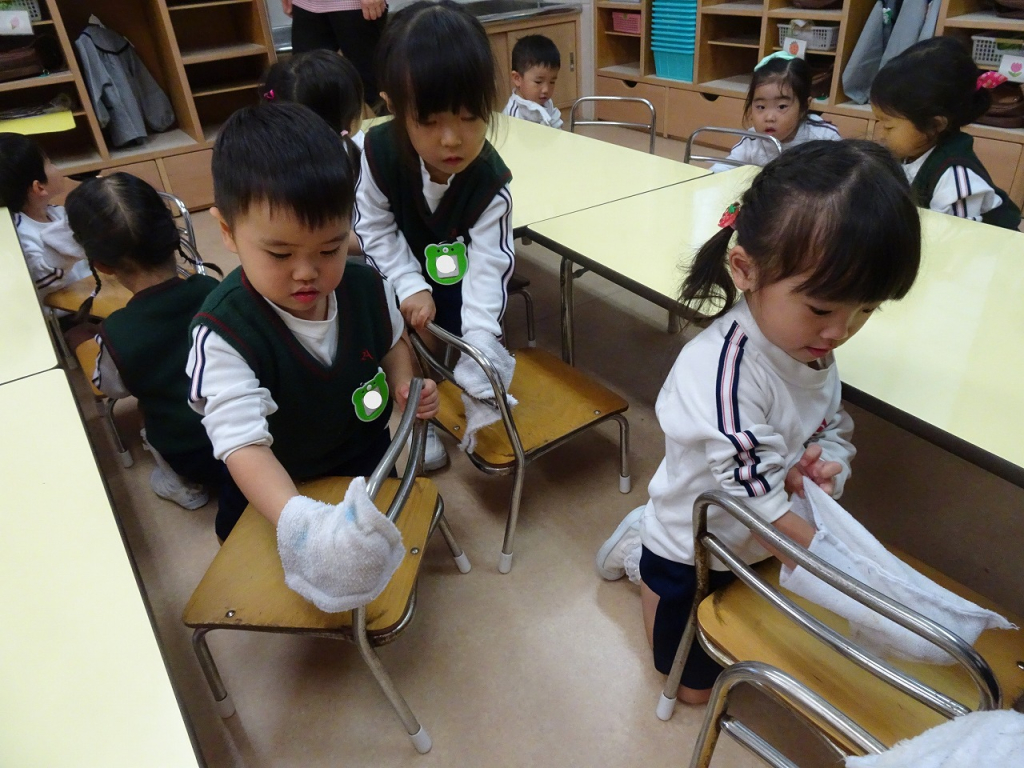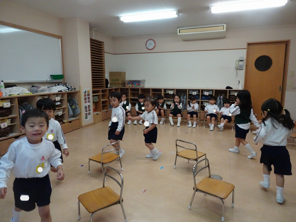 園ブログ 園全体 2025.10.31 第二園舎最終日 第二園舎の解体工事に伴い、11月から第一園舎に引っ越す予定の2歳・年少さんです。今日はあいにくの雨となりましたが、クラスでの遊びを楽しみました。 さくら組さんからはなんだか楽しい曲が聴こえてきます。「バケラッチョ」という曲で、曲の中に出てくるお題に合うポーズを、見本のお友達と合わせます。お友達と同じポーズになると嬉しいね! たんぽぽ組さんは椅子取りゲームをしました。少しずつ「勝ちたい!」という気持ちをもつお友達が増えてきており、どうやったら勝てるか考える姿が見られます。椅子取りゲームチャンピオンになったお友達は大喜びで、見ているお友達も拍手でお祝いしてあげていました。 今日でお別れする教室を、みんなでピカピカにしたすずらん組さんです。雑巾で一生懸命磨いたので椅子が綺麗になりました。「雑巾がこんなに汚れた!」と誇らしげな表情がかわいらしいです。 11/4(火)からは全園児が第一園舎で過ごします。環境の変化がありますが、子供達が笑顔で安心して過ごせるようにサポートしていきたいと思います。また来週からも元気に登園してきてくださいね! 一覧へ戻る