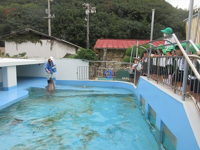 屋外の水槽には、オットセイやアザラシがいて、元気いっぱいの子供達を興味津々にのぞいていました。アザラシの水槽では、餌やりやトレーニング、健康チェックを見せてもらいました。手を振ったり、クルクル回ったり、お辞儀をしたり…。「おりこうだねぇ」と感心していましたよ。