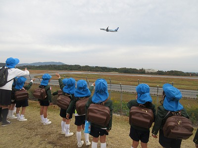 遊んだ後は、子ども達が楽しみにしていたお弁当の時間です。「今日はお父さんが作ってくれたサンドイッチだよ!」「みかん、一緒だね。」と楽しくお話をしながら食べる、嬉しそうな様子が見られました。食事中にも着陸する飛行機を見ることができましたよ♪