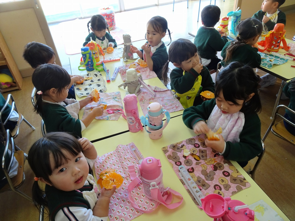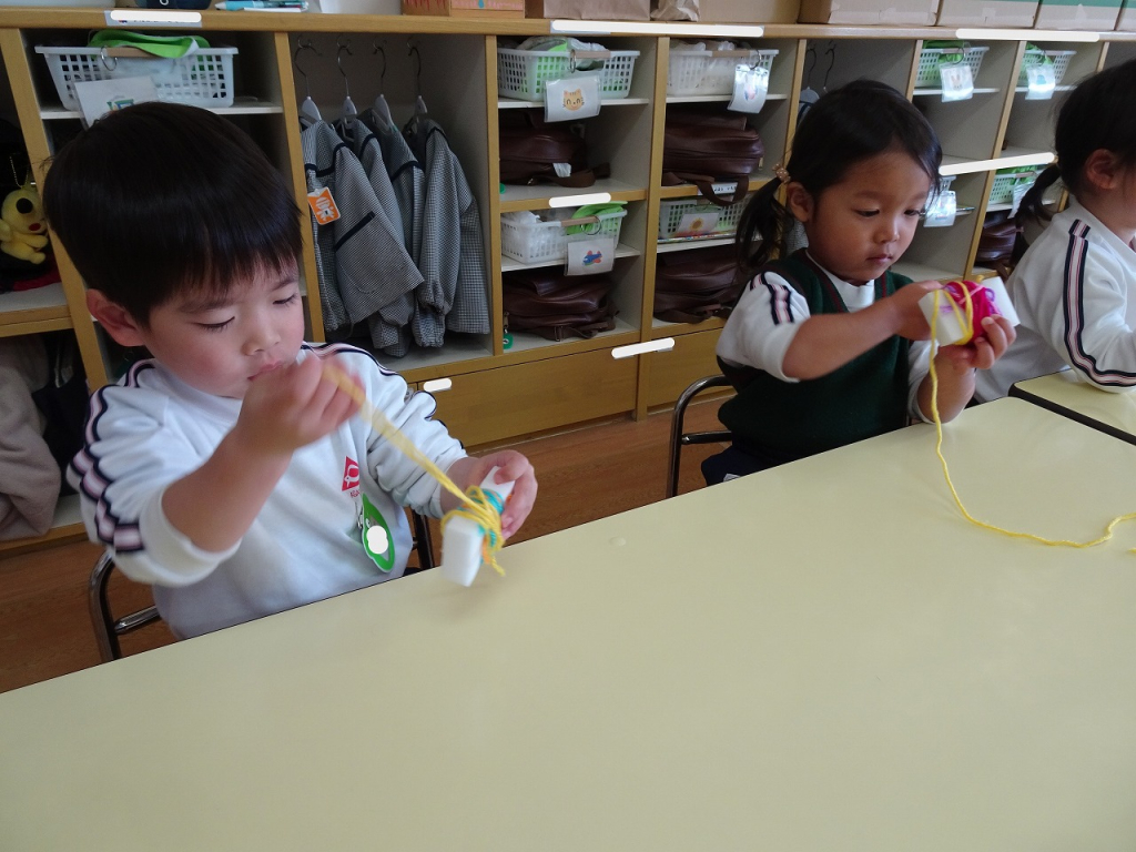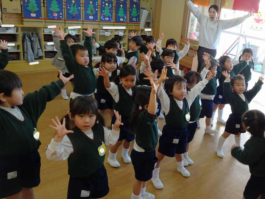 園ブログ 園全体 2025.12.09 今日の2歳児 2歳さんは昨日と今日で、洲脇先生の知育がありました。今回は、糸巻きでクリスマスにぴったりのオーナメントを作りました。クルクルと糸が巻かれていく様子に興味津々で、繰り返し糸を巻いて楽しみました。 すずらん組さんも挑戦する人になっていますね! 幼稚園で実ったみかんを食後に食べました。技師の先生が一生懸命育ててくださったみかんは、ほっぺたが落ちるくらい美味しかったですね。 2歳さんは、今週の金曜日にあるクリスマス会を楽しみにしています。出し物で披露する「しろくまくんなにしてる」を元気いっぱい踊りました。サンタさんは来てくれるかな?!今からワクワク期待をもっている子供達です。 一覧へ戻る
