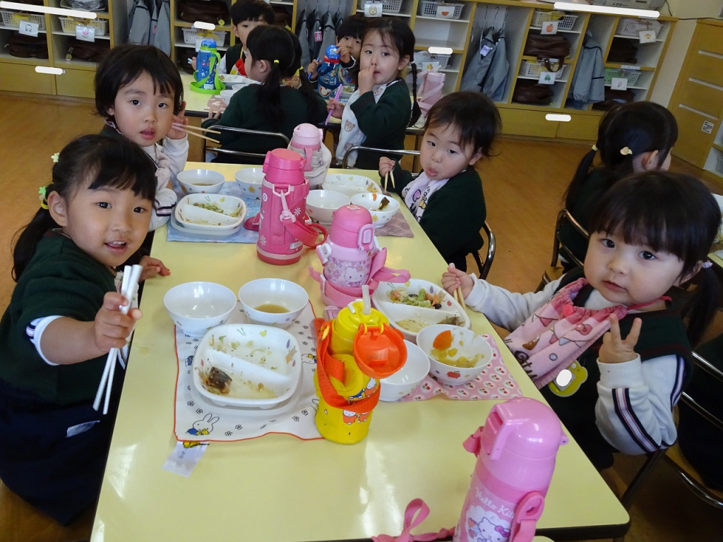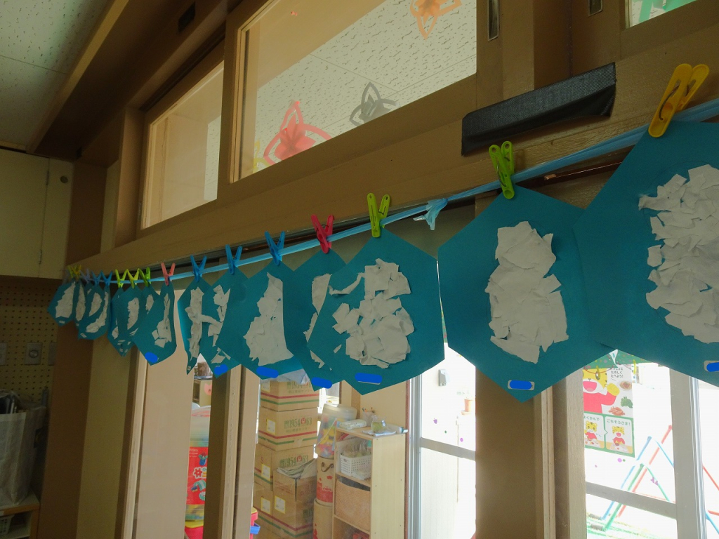 園ブログ 園全体 2025.12.15 今日の2歳さん 新園舎を飾る1月の壁面制作をしました。今回は糊を使った制作で、雪だるまの形の中に小さくちぎった白い紙を根気よく貼りました。かわいい雪だるまになるよう、丁寧に糊付けしていますよ。 糊付けが終わりました!どの雪だるまも、もうかわいいです♡次は、帽子や手袋を貼ったり、顔をクレヨンで描きます。完成が楽しみですね。 今日の給食は、玄米ご飯・あじの香味だれ・ブロッコリー豆サラダ・みそ汁でした。「ブロッコリー頑張る!」「おかわりください」と、どの友達も自分から意欲的に食べていましたよ。 給食後は、戸外で遊びました。友達と手をつないで「大きいたいこ小さいたいこ」のふれあい遊びをしていると、「入れてよー」と他の友達も参加してくれました。友達との触れ合いの中で、友達の輪がどんどん広がるようにしていきたいと思います。 一覧へ戻る