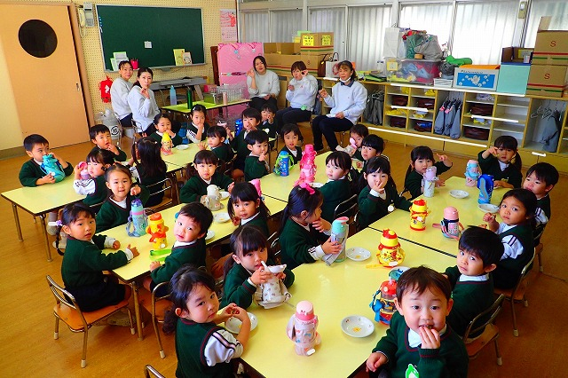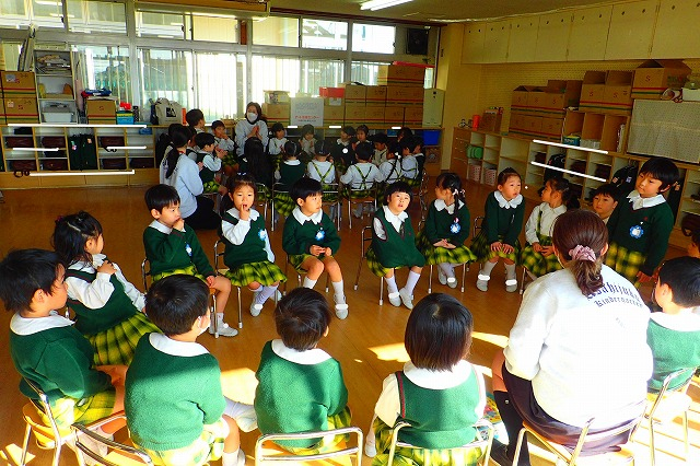 園ブログ 園全体 2025.12.19 2学期終業式 遊戯室にみんなで集まって2学期の終業式を行いました。園長先生と一緒に2学期の出来事を振り返ったり、「4つのおやくそく」の話を聞いたりしました。さすが年長さんは聞く姿勢がとても素敵ですね! 部屋に戻ってからも先生や友だちと一緒に2学期を振り返り、楽しかったことを発表しました。運動会や芋ほり、遠足など行事の多かった2学期は楽しいこともたくさんありましたね! 第一園舎に引っ越してきてから2か月間使っていた靴箱やロッカーなど、感謝の気持ちを込めて丁寧に掃除をしました。雑巾が真っ黒になるまでピカピカにしてくれた子供たちでした。 先日のもちつき会でついたもちは、セントラルフーズさんが美味しいおかきに大変身させてくれ、幼稚園にやってきました!自分たちでついたおもちはとてもおいしく、しっかり噛んでいただきました。 友だちや先生とたくさん遊んだ第一園舎ともお別れです。次は1月6日(火)にピカピカの新園舎で待っています! 怪我のないよう楽しい冬休みをお過ごしくださいね!良いお年を・・・ 一覧へ戻る