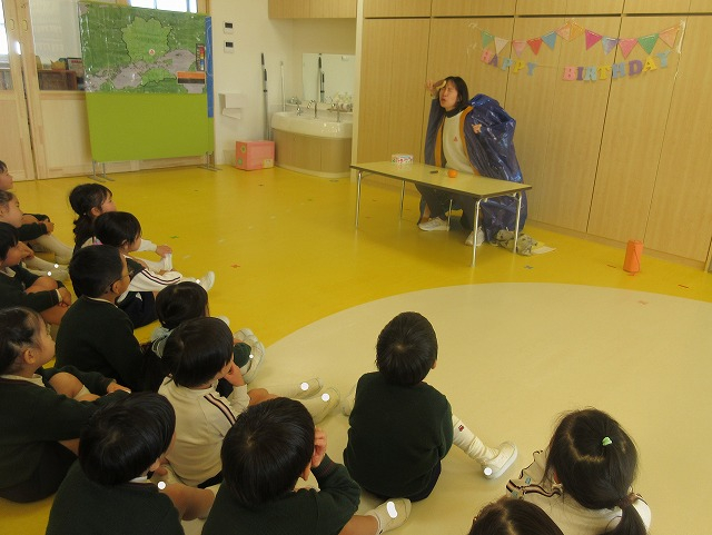 園ブログ 園全体 2026.01.09 誕生祝い会(12月・1月) 今日は12月・1月生まれのお友達の誕生祝い会がありました。 2歳さんは、誕生日のお友達が名前と好きな食べ物を教えてくれました。堂々と発表ができましたね! 年少さんは11名の誕生児をお祝いしました。どのお友達も好きな食べ物が沢山あり、「え~!5個もあるの!?」とびっくりな子供達。自信をもって元気に発表する姿が素敵でしたよ! 年中さんは、誕生日のお友達が名前と将来なりたいものを元気に発表し、友達から歌や拍手でお祝いしてもらいました。その後、先生から二人羽織の出し物があり、思うようにいかないやりとりに笑いが起こり、「がんばれ!」「ちがうちがう!」と大盛り上がりの子供達でした。 年長さんは、4名の誕生児をお祝いしました。誕生児の子供達は緊張しながらもお立ち台に立って堂々と発表することができました。お歌を歌ったり、出し物でビンゴをしたりと子供達は大盛り上がりでしたね✨12月、1月生まれのお友達おめでとう! 一覧へ戻る