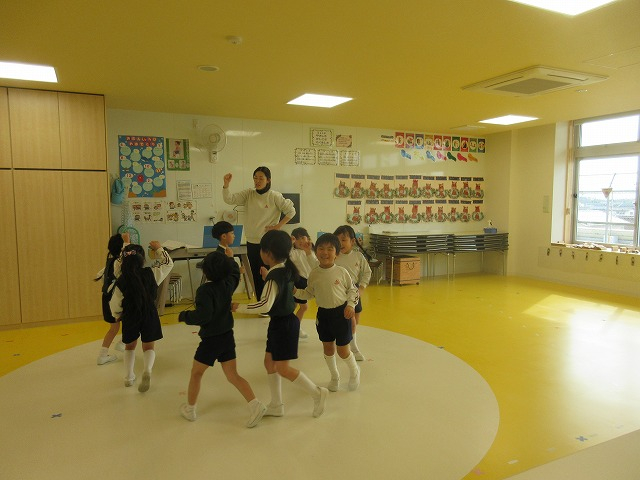 園ブログ 園全体 2026.01.15 今日の年中組 朝、年中さんのお部屋のを覗いてみると…すごろく遊びをしていました。サイコロを振り、出た目の数だけコマを進めます。お正月にお家で遊んだお友達もいるのかな?とても盛り上がっていました。お友達と一緒だと楽しいですね! サークルタイムの後は、それぞれの役に分かれて遊戯の練習に取り組みました。「はらぺこあおむし」の子ども達は素敵な羽を付けて踊りましたよ!とても嬉しそうですね(^^) 「ねずみのさかなつり」の子ども達は元気いっぱいな曲が大好きで、毎回ノリノリで練習しています♪今日も元気なかけ声がお部屋に響いていました。年中さんは、発表会で自分たちが選んだ絵本のお遊戯に挑戦します。振り付けも子ども達が考えました。お家の方に見てもらえる日を楽しみにしながら、練習に取り組んでいきたいです。 一覧へ戻る