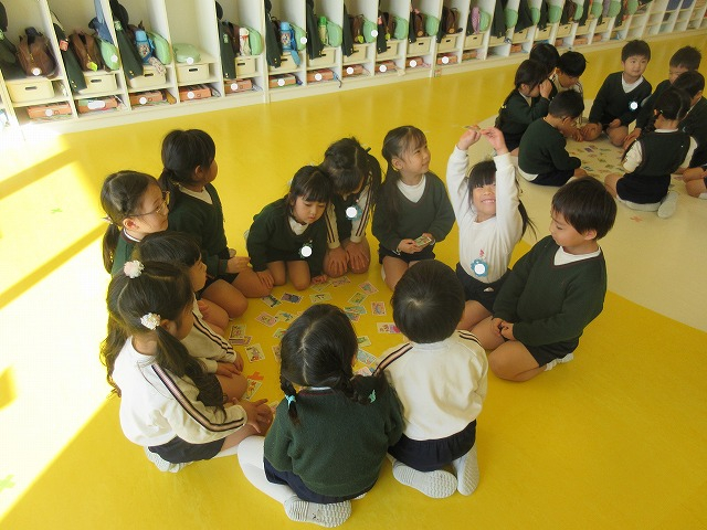 園ブログ 園全体 2026.01.19 今日のすみれ組 一週間の始まりは、みんな元気いっぱい!朝の自由あそびでは、折り紙で雪だるまを作りました。先生の折り方をしっかり見ながら挑戦し、完成すると「できた!」と嬉しそうな笑顔が見られました。 その後は、クラスみんなでかるた大会をしました。真剣な表情で札を探し、見つけると「はい!」と元気よく手を伸ばす姿がたくさん見られました。大盛り上がりの楽しい時間になりました。 クリス先生の英語では、あやめ組さんと一緒に発表会の練習しました。教えてもらったことを思い出しながら、英語でのやり取りを楽しんで取り組んでいます。表情や身振りにも気を付けながら、自信をもって発音する姿が増えてきましたね。 合奏の練習では、背筋を伸ばして足をそろえるなど姿勢を正すことを意識して取り組む姿が見られました。みんなで気持ちを一つにして練習を重ねるうちに、だんだん音がそろうようになってきました。 帰りの集まりでは紙芝居を楽しみました。紙芝居が大好きな子供たちは「やった!」「紙芝居だ!」とワクワクしながら待ち、冬らしい心あたたまるお話に夢中になっていました。明日も元気に登園してくださいね。 一覧へ戻る
