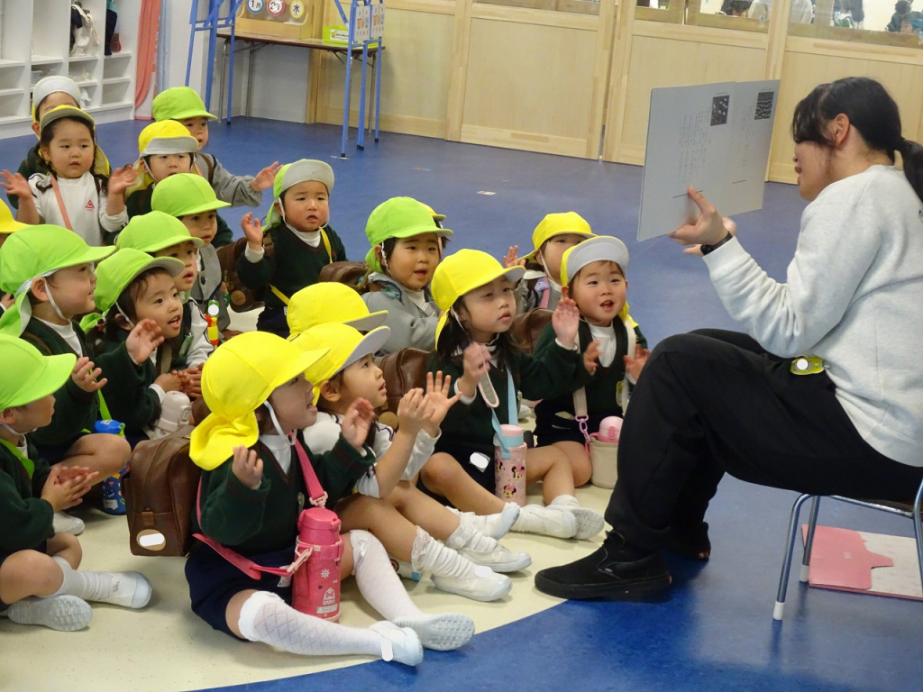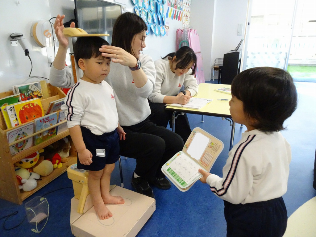園ブログ 園全体 2026.01.21 今日のたんぽぽ組 たんぽぽ組さんは今日も元気いっぱいで幼稚園に来てくれましたよ! 3学期から、登園したらクラスの前でご挨拶をしています。「おはようございます!」と素敵なご挨拶が聞こえてきました。 今日は初めてホールで発表会の練習をしてみました。練習を重ねる毎に自信をもって踊る姿が見られるようになってきました。来週の衣装合わせを楽しみに、張り切っている子供達です。 1月の身体測定をしました。「お願いします」「ありがとうございました」とご挨拶ができました。「おおきくなったね」と声をかけてもらい嬉しそうでした。 給食前に1階のエントランスにお出かけをして、絵本を見ました。絵本は元の場所に戻すこと、大切に使うことをお約束して、自由に絵本を見てみました。気に入った絵本を手に取り、ゆったりとした時間を過ごすことができました。 降園前には紙芝居「まんまるまんま たんたかたん」をみました。ちびっこ忍者のまんまるをみんなで応援して盛り上がりましたよ。 寒い日が続きますが、明日も元気に来てくださいね! 一覧へ戻る