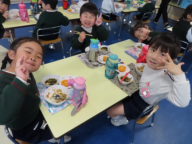 毎朝登園してすぐに「先生、今日の給食は何?」と朝から給食が楽しみな子供達。「今日のお汁だいすき!」といつも好きなメニューを教えてくれたり、友達に伝えたりして、味わいながら食べる様子がとても可愛らしいです♡