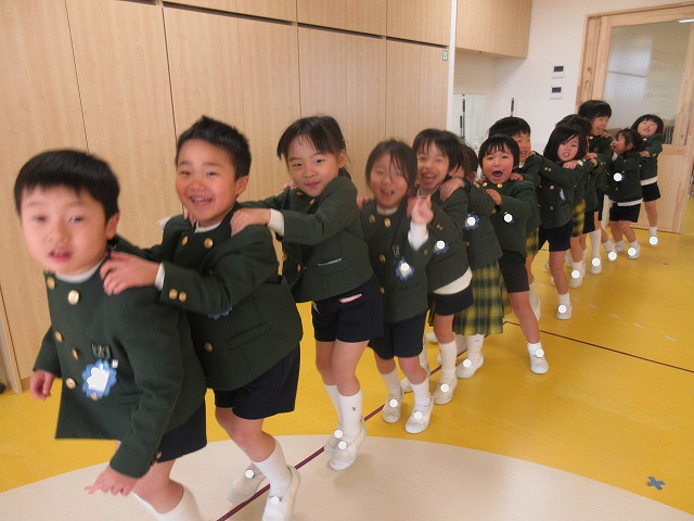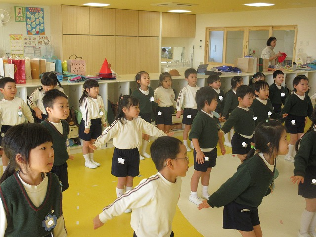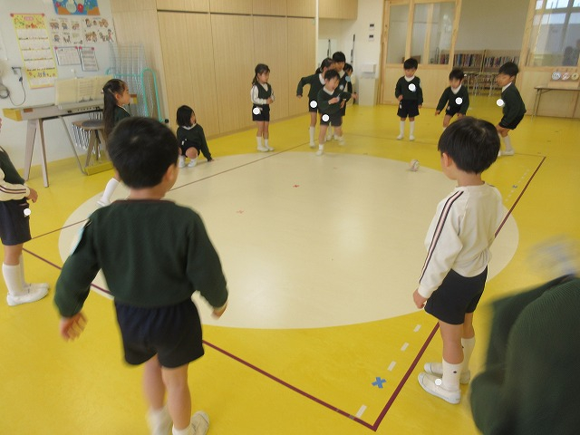 リズムジャンプをしました。前跳びやジグザク跳びなど、今は何跳びなのか考えながらジャンプをしていました。お友達と繋がってのジャンプにも挑戦し、たくさんの笑顔が見られました。お友達との息もピッタリでしたよ♪
