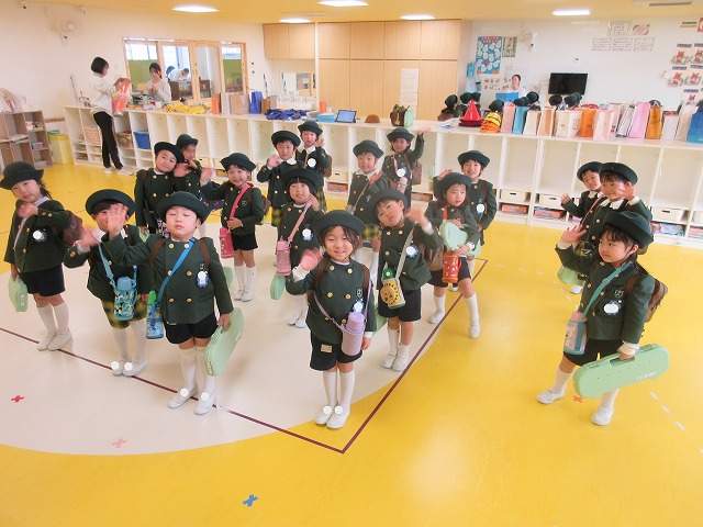 すみれ組さんと一緒に「ポップコーン」のリズム遊びをしました。先生が踊る姿を見て、「振りがかわいい」と子供達から声がでました。次は自分達の番!全身を使ってポップコーンがはじける様子を意識しながら踊りました。