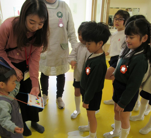 うさぎクラブでは新園舎が出来て初めてのお披露目になり、シールラリーをしながら幼稚園を探検しました。