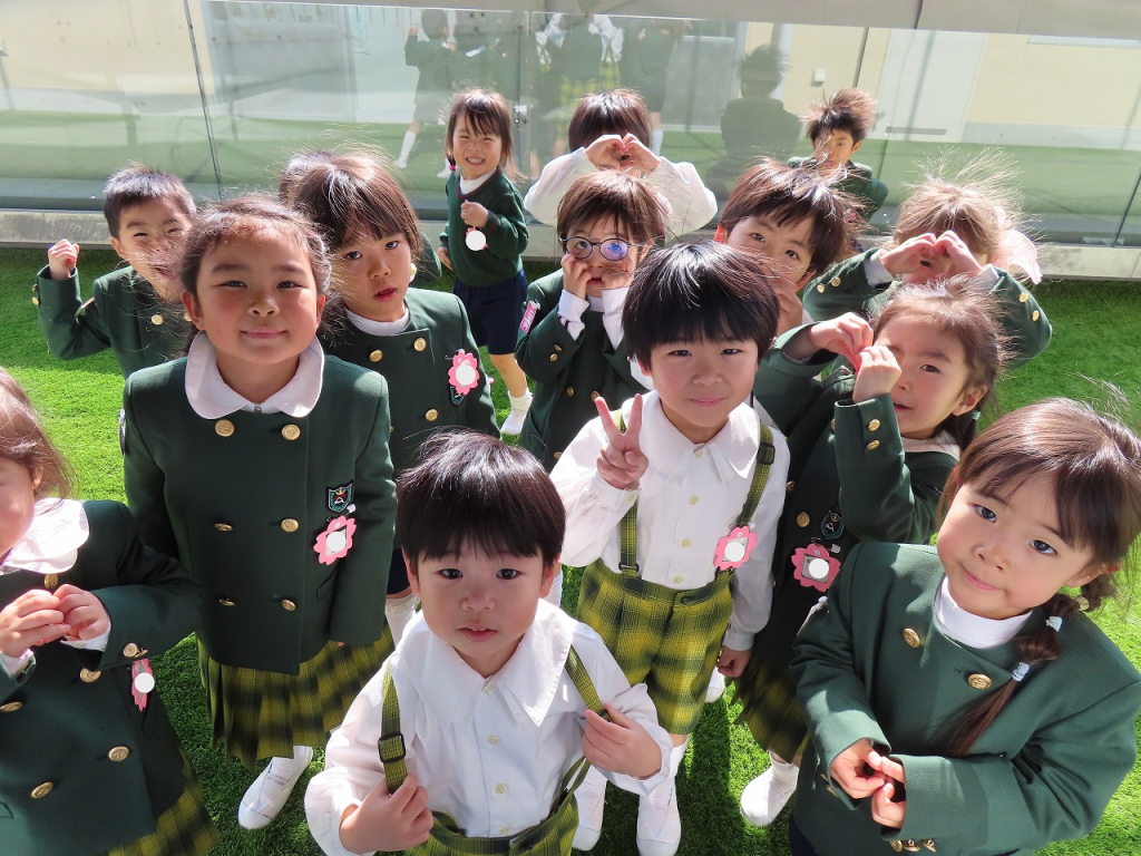 年少さんも食後にテラスで遊びました。カメラを向けると可愛いポーズを見せてくれましたよ。お友達と一緒で嬉しいね!