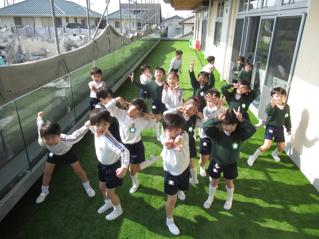 ゆり組さんは合奏や遊戯の練習を頑張ったあと、二階のテラスに出て元気に遊びました。しっかり体を動かして、大はしゃぎ!しっかり気分転換もしながら、本番に向けて期待が高まっています。