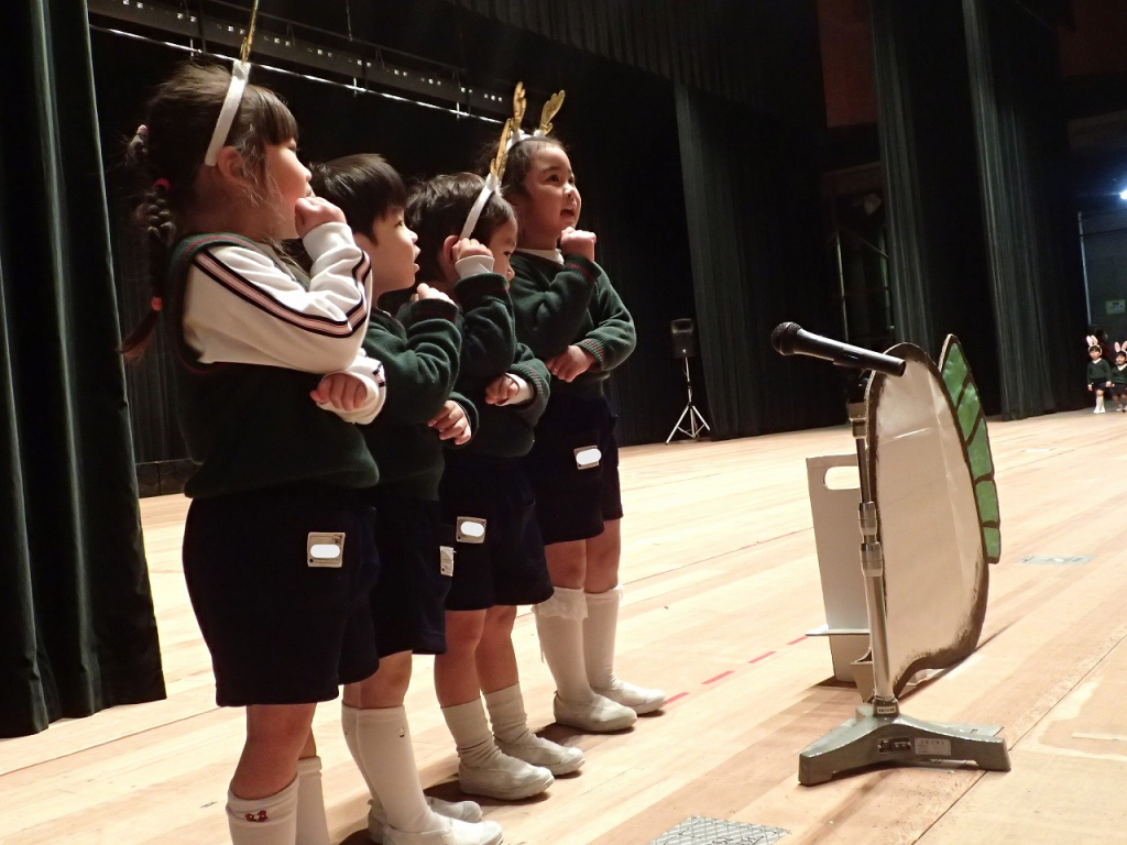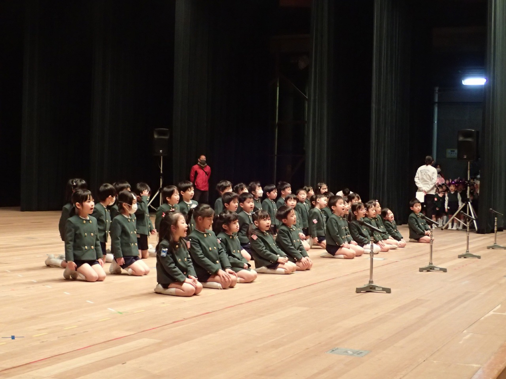 全体フィナーレでは、年長さんの取り組む姿勢が他の学年の子供達のお手本になっています。園生活最後の発表会を楽しんでね!
