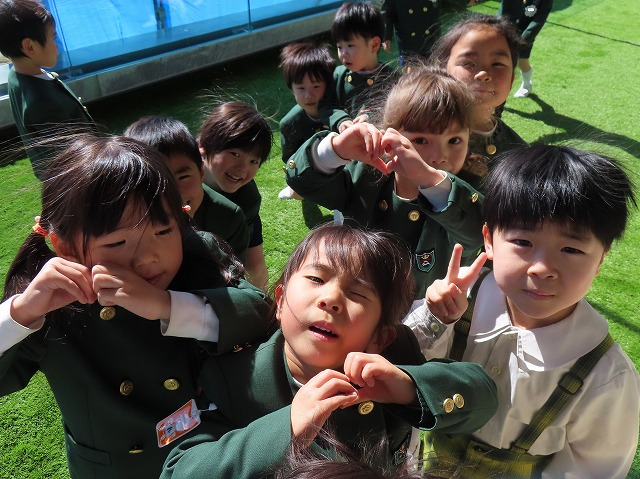 ぽかぽか温かい日差しの中で、友だちとたくさん走り回ってリフレッシュすることができました。カメラを向けると、それぞれ好きなポーズを構えてくれて、可愛らしい写真が撮れました。明日も元気に登園してくることを楽しみに待っています。