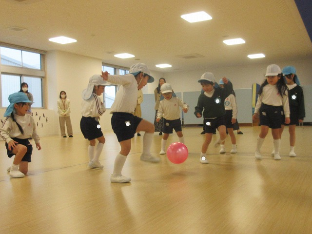 ドッヂボールでは、ボールから素早く逃げたり、ねらいを定めて投げたりと、一人ひとりが考えて動く姿が見られました。また、「がんばれー!」と友達を応援する声も聞こえ、クラスの温かい雰囲気が感じられました。最後はお家の方との対決を行い、大盛り上がりの時間となりました。
