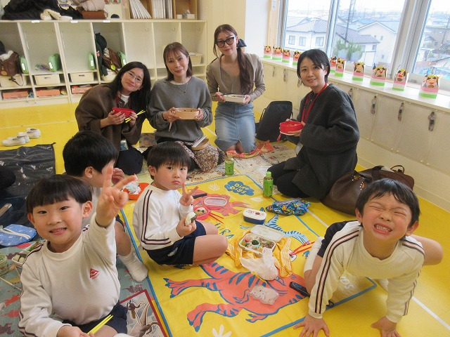 待ちに待ったピクニックランチタイム!大好きなお友達やお家の人と食べるお弁当はとっても美味しいですね。お家の人やお友達と一緒に楽しく過ごすことができた年中さんでした。お忙しい中ご参観ありがとうございました。
