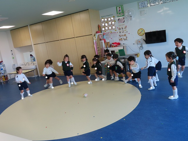 ばら組では、最近流行っているゲーム、ころがしドッヂボールをしました。だんだんとボールをよく見るようになり、最後まで残る子供も増えてきました。繰り返しした後、「まだやりたい!」という声が聞かれるほど大好きなゲームになりました!