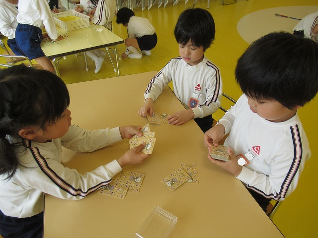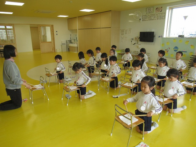 園ブログ 園全体 2026.04.14 今日の年長組 年長さんは今日も元気いっぱいです。一番大きいクラスになって張り切って生活する姿を見ることができます。朝の自由遊びの時間には、それぞれのお部屋で好きな遊びを楽しんでいました。そら組さんでは、高く積み上がったカプラが完成していましたよ。お友達と相談しながら、倒れないようにそっと扱っています。 ひかり組さんでは、トランプでジジ抜きをしていました。枚数をかぞえながら、ルールを知らせあって遊ぶことができています。 ホールでは、マーチングに向けてステップ練習が始まっています。姿勢や足の左右、声の大きさなど自分で考えながら取り組みます。少しずつテンポをつかんで頑張ることができていますよ。 クラスでは、バチ打ちも頑張っていました。年少さんからの積み重ねもあり、みんな自信をもってできています。「はい!」の声もとてもかっこいいですよ。 帰る前には、身なりを整えて元気よく挨拶です。さすが年長さん、とてもいい姿勢でかっこいいですね。 一覧へ戻る