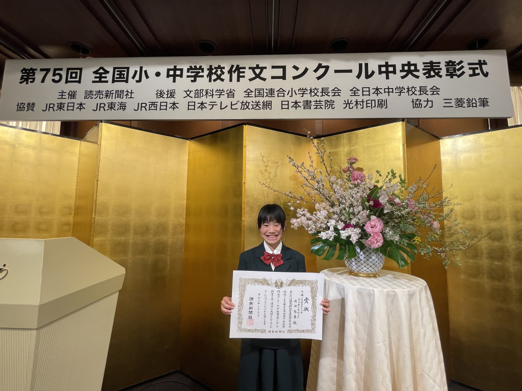 第75回 全国小・中学校作文コンクール入賞!